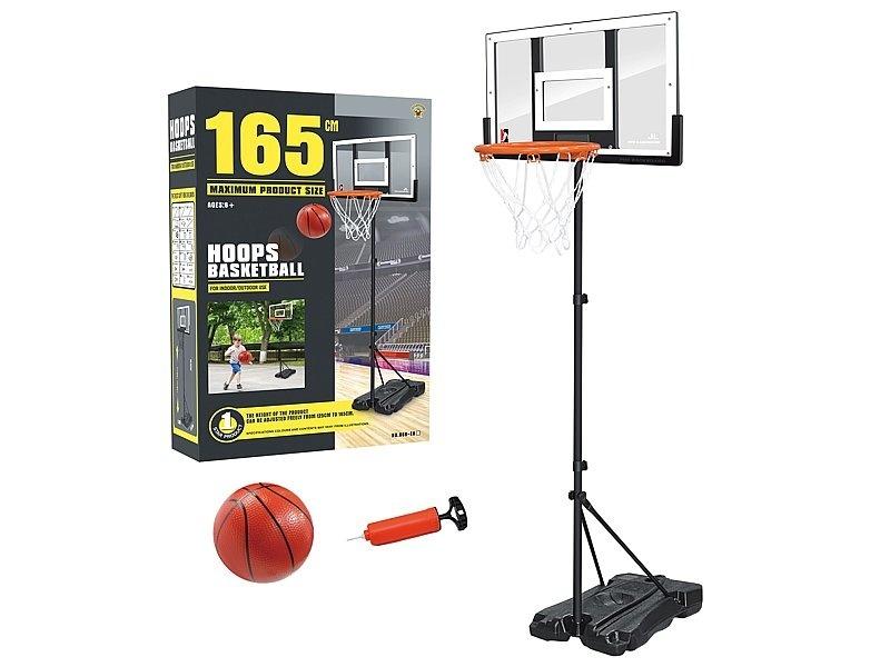 zestaw do gry w koszykówkę, kosz wys. do 165cm, przezroczyta tablica 55,5x35x2,7cm, metalowa obręcz, piłeczka i pompka; 57x37x13cm, Box