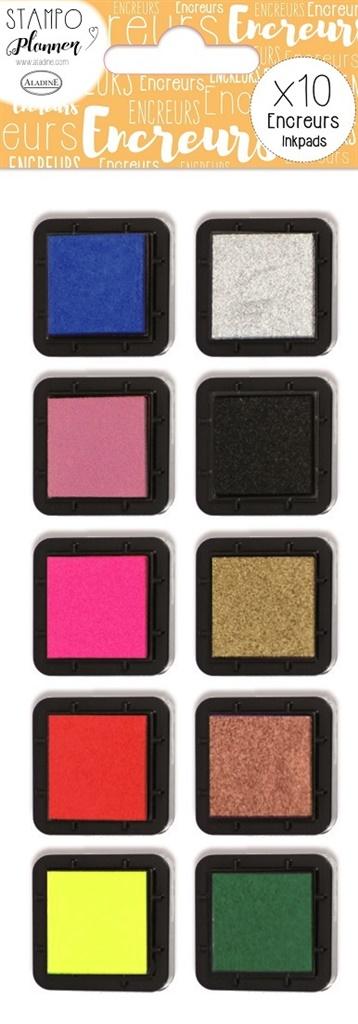 Zestaw gąbeczek z tuszem do papieru w 10 kolorach.