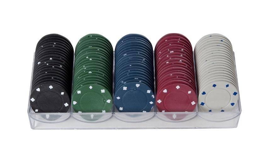 Zestaw 100 żetonów do pokera 5 kolorów