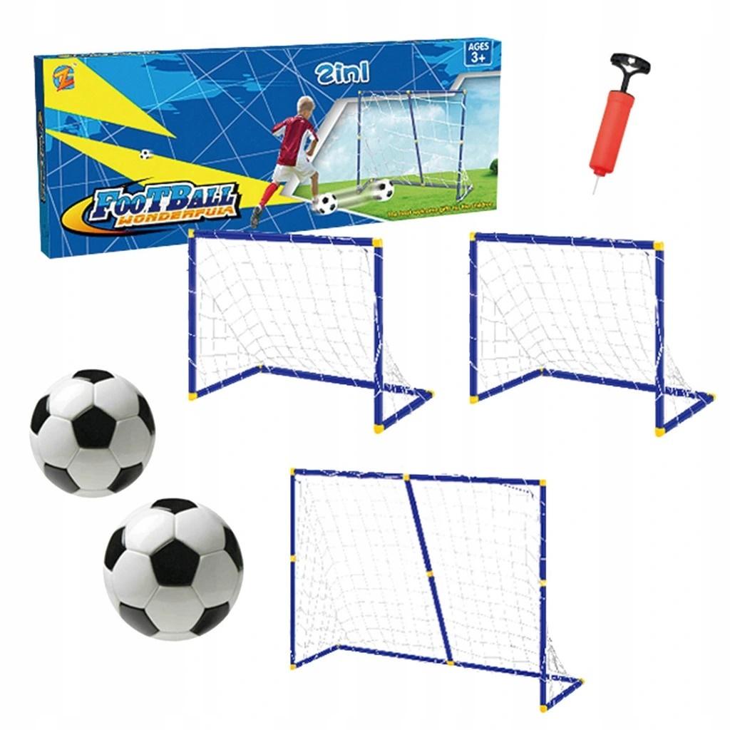 W ZESTAWIE: ELEMENTY DO ZŁOŻENIA DWÓCH BRAMEK 73,5 X 55,5 X 45,5 CM. LUB JEDNEJ WIĘKSZEJ 138 X 100 X 45,5 CM., 2 PIŁKI 14 I 10 CM, POMPKA, WYM. OPK: 66 X 25 X 5 CM., 3+