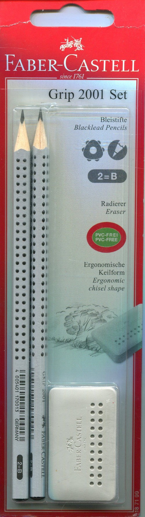Opakowanie Zestaw 2 ołówki + gumka Grip 2001
