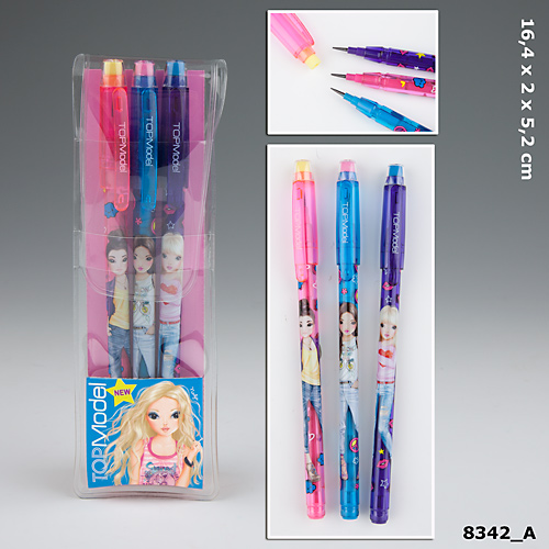 Zestaw ołówków Top Model. Zestaw trzech przekładanych ołówków (różowy, niebieski, fioletowy) Top Model w plastikowym etui.