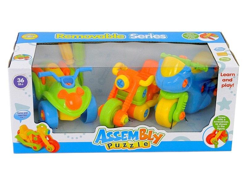 Zestaw 3 pojazdów do skręcania z narzędziami.