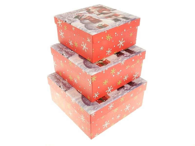 Zestaw 3 pudełek prezentowych z motywem świątecznym, S-15,5x15,5x7,5cm; M-18x18x8,5cm; L-20x20x9,5cm.