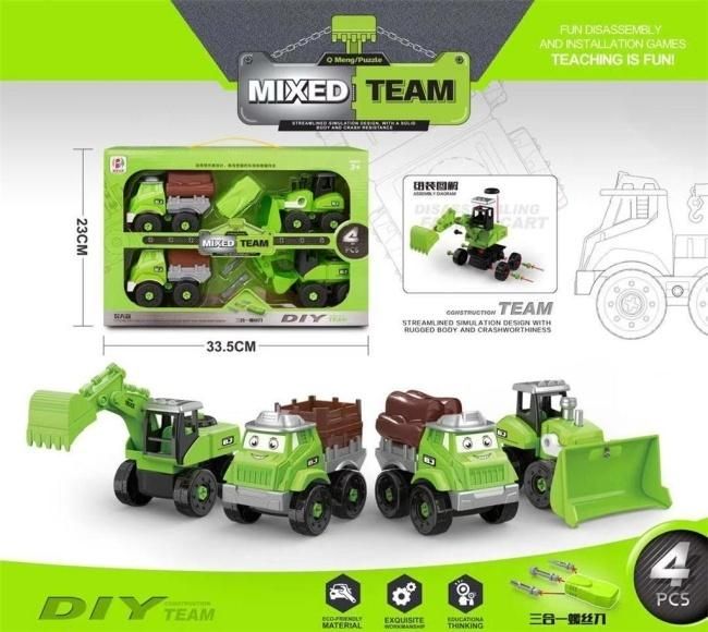 Przedstawiamy zestaw "MIXED TEAM" - 4 fantastyczne zielone pojazdy budowlane DIY, które zapewnią godziny edukacyjnej i wciągającej zabawy! W skład zestawu wchodzą: koparka, wywrotka, ciężarówka z naczepą oraz spychacz. Każdy pojazd można rozkręcić na części, a następnie złożyć z powrotem, co stanowi doskonałe ćwiczenie dla małych rączek i rozwija zdolności manualne, koordynację wzrokowo-ruchową oraz logiczne myślenie. Zabawki wykonane są z wysokiej jakości, bezpiecznych materiałów, charakteryzujących się opływowym, symulacyjnym designem, co sprawia, że są zarówno solidne, jak i atrakcyjne wizualnie. W zestawie znajdują się również niezbędne narzędzia do montażu i demontażu, co sprawia, że produkt jest gotowy do zabawy od razu po wyjęciu z opakowania. To idealny prezent dla małych inżynierów i miłośników pojazdów, którzy cenią sobie kreatywną i rozwijającą zabawę.