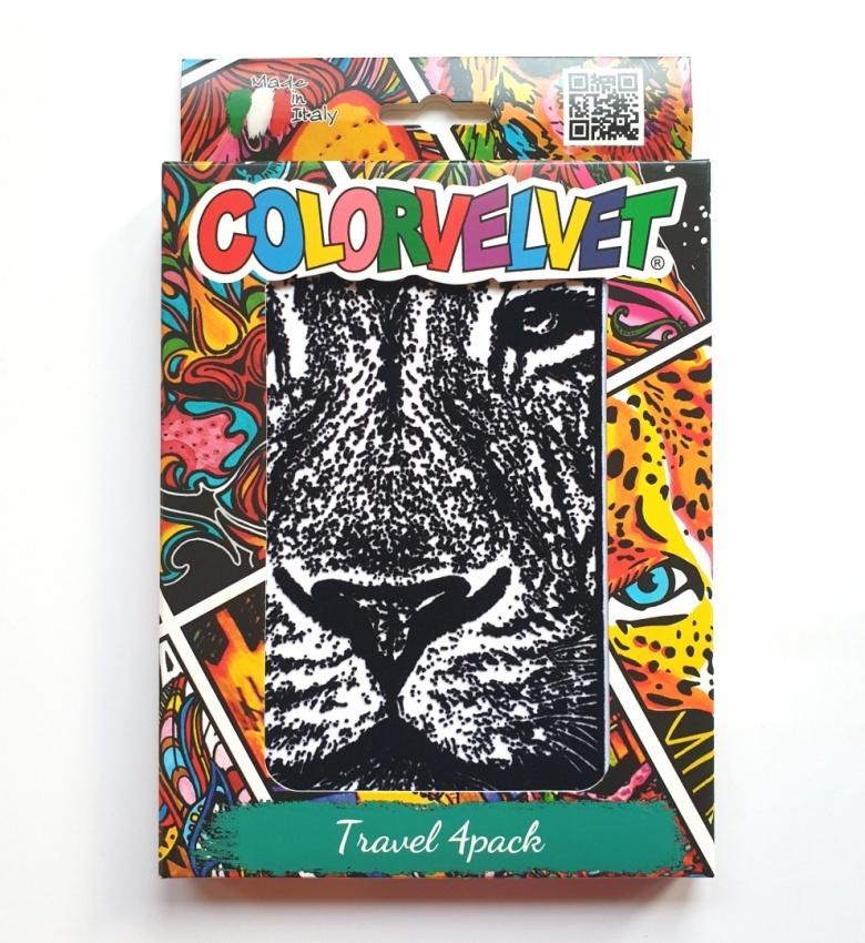 Zestaw 4 małych kolorowanek welwetowych wraz z flamastrami - idealny towarzysz podróży.