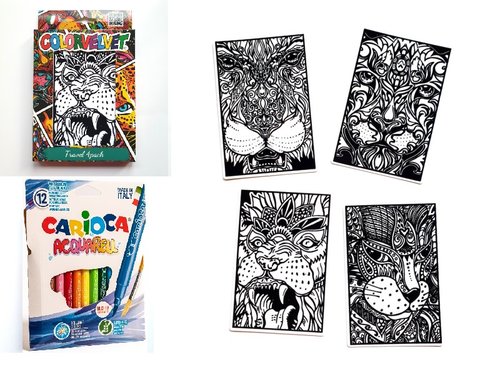 Opakowanie Zestaw 4 Kolorowanek Welwetowych + 12 Flamastrów Carioca - Dzikie Koty