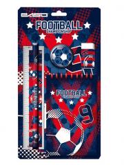 Zestaw szkolno - upominkowy 7 elementów na blistrze, w skład którego wchodzą: linijka 15 cm, gumka do mazania, temperówka, ołówek HB, notes.