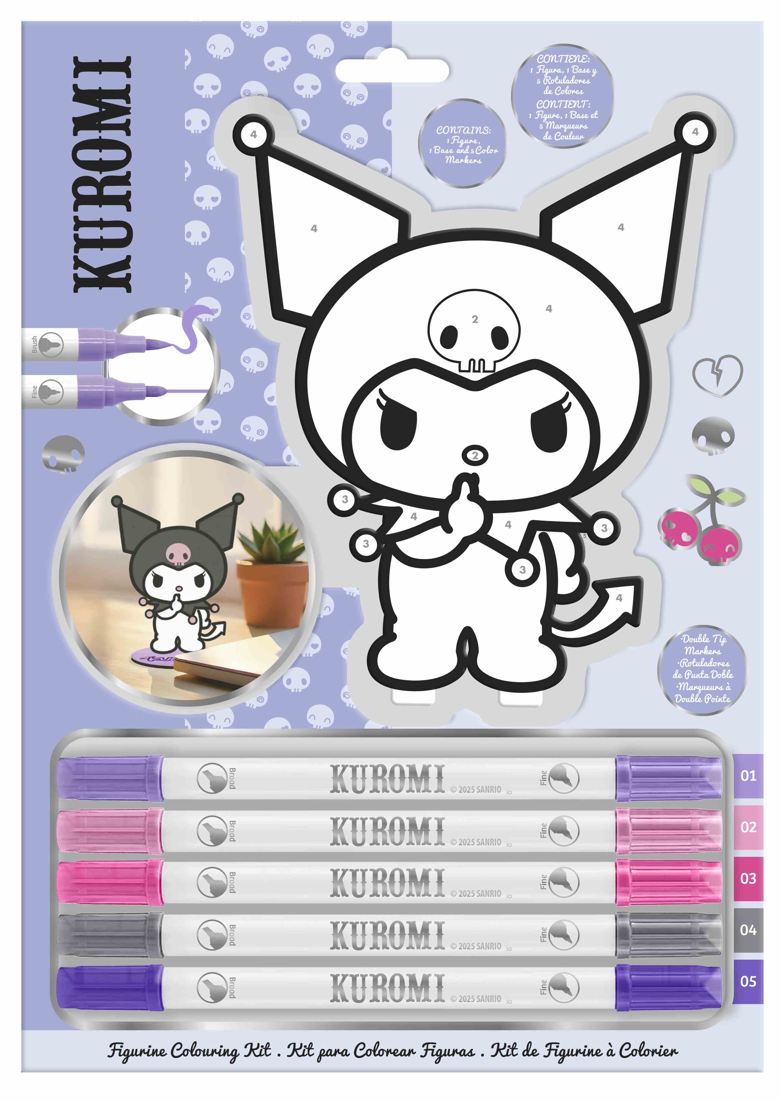 Ten zestaw do rękodzieła wyróżnia się tym, że oferuje trójwymiarowe doświadczenie, ponieważ pozwala malować bezpośrednio na figurce z płyty MDF (płyty pilśniowej średniej gęstości) wyciętej w kształcie sylwetki Kuromi.