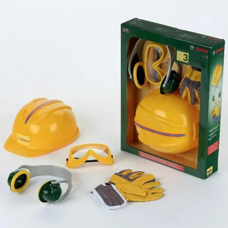 KL 8537 Zestaw akcesoriów Bosch z kaskiem Zestaw akcesoriów Klein powstał na licencji Bosch, dlatego też akcesoria w nim zawarte są wierną kopią prawdziwych produkowanych tę przez firmę. W zestawie tym znajdują się rękawice robocze (KL 8120), okulary ochronne (KL 8122), kask ochronny (KL 8127) i nauszniki ochronne (KL 8505). Wszystkie zawarte w zestawie akcesoria ochronne maja możliwości regulacji dzięki której rozmiar można dopasować dla dzieci w różnym wieku, a ich rozmiar można uznać za uniwersalny. Zabawki Klein umożliwiają dzieciom naśladowanie rodziców podczas codziennych czynności domowych w sposób realistyczny i bezpieczny, zapewniając swobodną zabawę i naukę. Zestaw akcesoriów Bosch może być doskonałym dodatkiem do innych zestawów z serii Bosch od Klein. Zarówno do pracy i zabawy z wiertarką, piłą łańcuchową, młotem pneumatycznym czy przy warsztacie każdy mały majsterkowicz powinien mieć na sobie akcesoria ochronne. Specyfikacja: Produkt jest zabawką Zabawka przeznaczona dla dzieci powyżej 3 roku życia Waga : 0,64 kg Wymiary opakowania : 30x40x11 cm Ilość w opakowaniu zbiorczym : 6 Kraj pochodzenia : Chiny