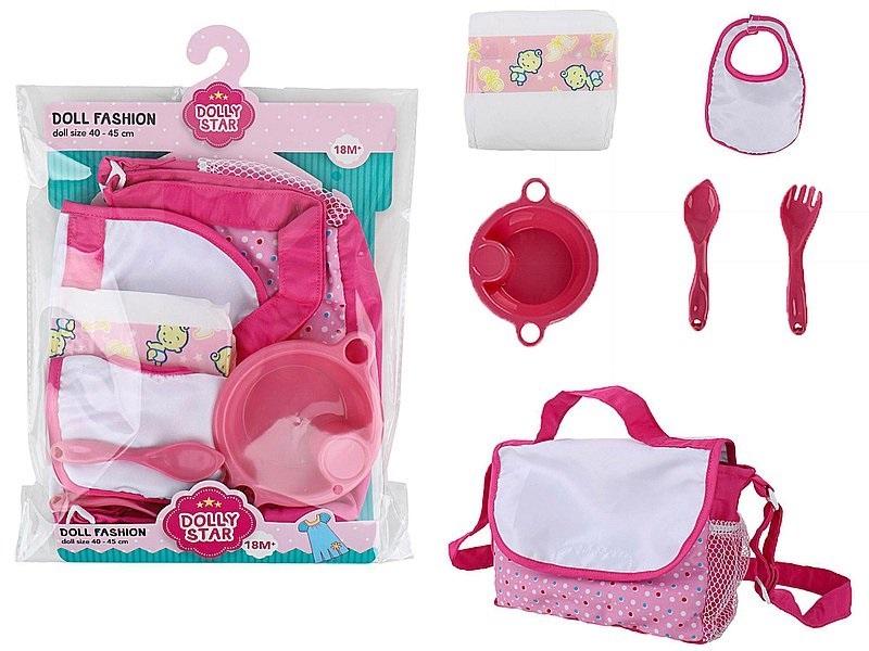 Zestaw akcesoriów dla lalki, do karmienia i przewijania, w torbie; 28x21x4cm, PVC