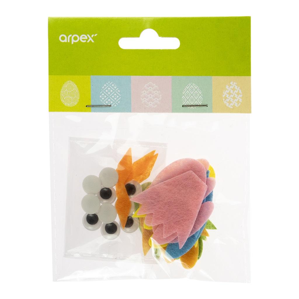 Elementy do własnoręcznego wykonania 5 kurczaków. Zalecany do dekoracji np. styropianowych jajek. W zestawie: ruszające się oczka, ogonki, dziobki i skrzydełka. Zabawa dla każdego dziecka!