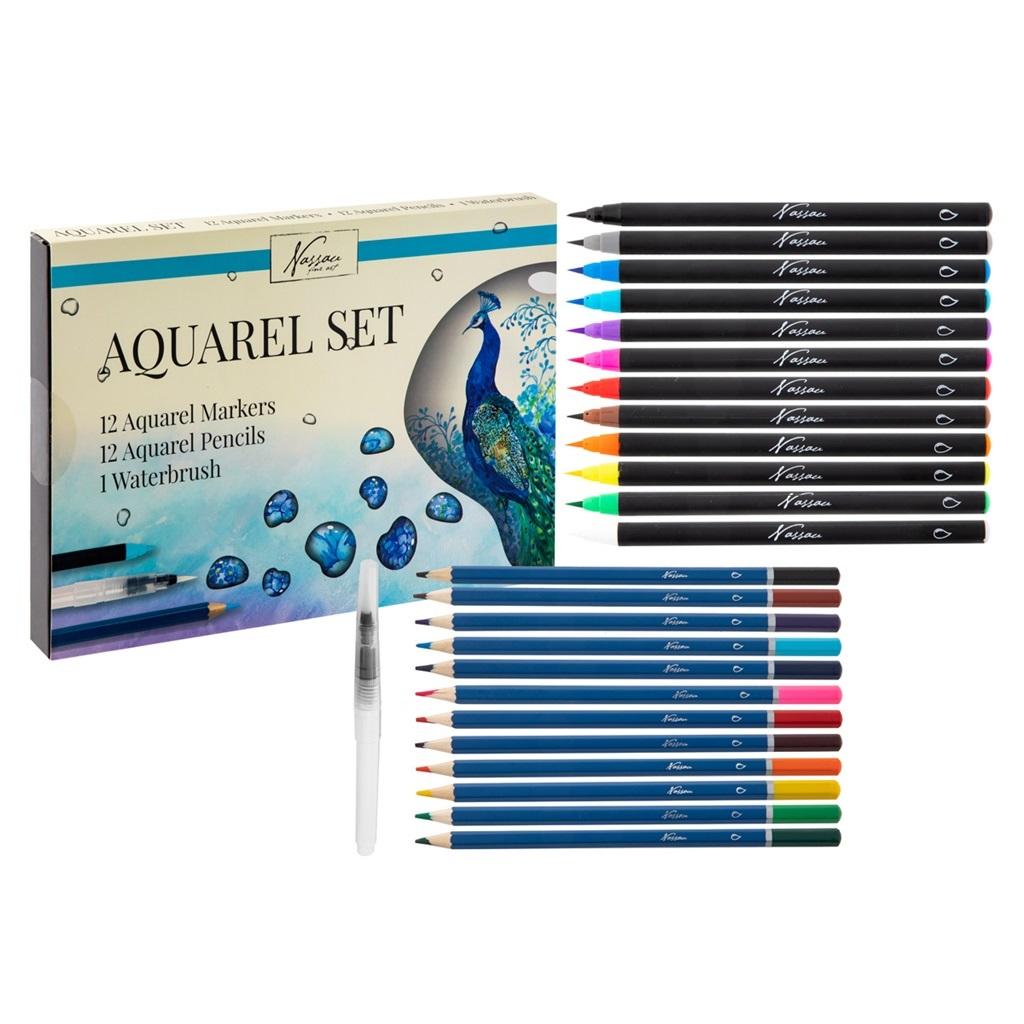 - Zawierają tusz akwarelowy, po nałożeniu na papier zabarwia