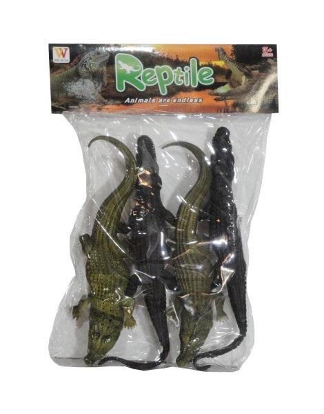 Zestaw 4 kolorowych, piszczących aligatorów. Produkt zapakowany w przezroczysty worek. Produkt przeznaczony dla dzieci od 3 lat. Podane wymiary są wymiarami opakowania.
