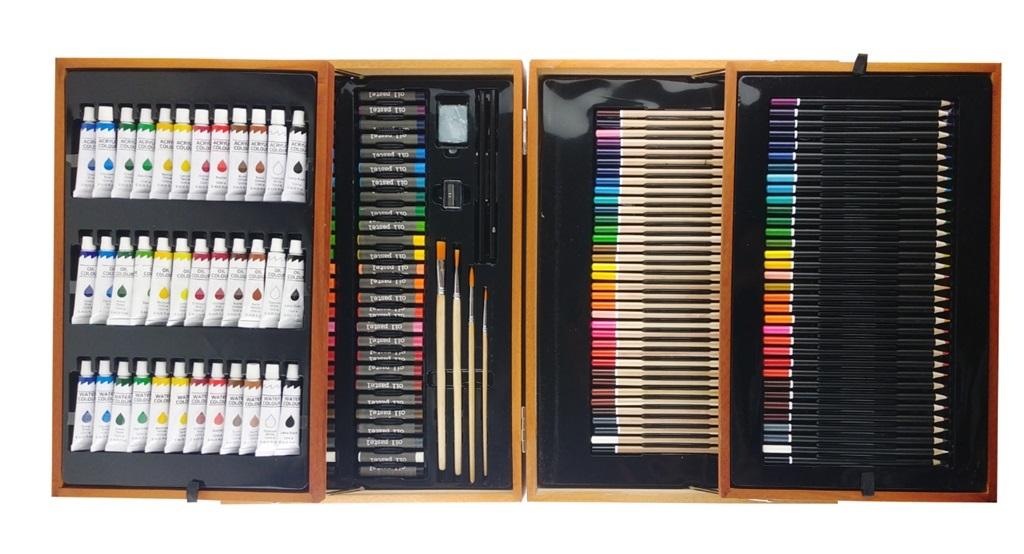 ZESTAW ARTYSTYCZNY 168 elementów, zapakowany w drewnianą teczkę.