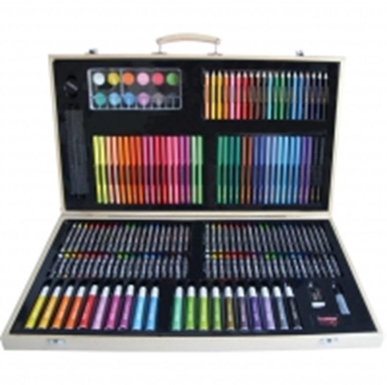 Zestaw artystycznyto doskonały początek przygody młodego artysty. Komplet jest funkcjonalny i składa się łącznie z180 praktycznych elementów.Mnogość przyborów sprawi, że każde użyciezestawu artystycznego będzie doskonałą podróżą w świat sztuki.W skład zestawu wchodzą 56 flamastrów, 40 kredek świecowych, 40 pasteli olejnych, 20 kredek, 12 farbek akwarelowych, linijka, ołówek, pędzelek, klej, gumka, temperówka, 7 spinaczy . Wykonane z najwyższej jakości materiałów przybory mają szeroką gamę kolorystyczną, co dodatkowo ułatwi wykonywanie prac plastycznych czy codzienny użytek. Całość została umieszczona w eleganckiej i praktycznej walizce, ułatwiającej przenoszenie i dodatkowo podbijającej walory estetyczne całego zestawu. Zestaw do malowania i rysowania to nie tylko obowiązkowy element wyposażenia każdego ucznia czy miłośnika kreatywnych zadań, ale także doskonały pomysł na prezent.