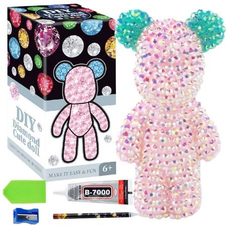 W zestawie znajduje się figurka misia, która stanowi bazę do wyklejania kryształkami.