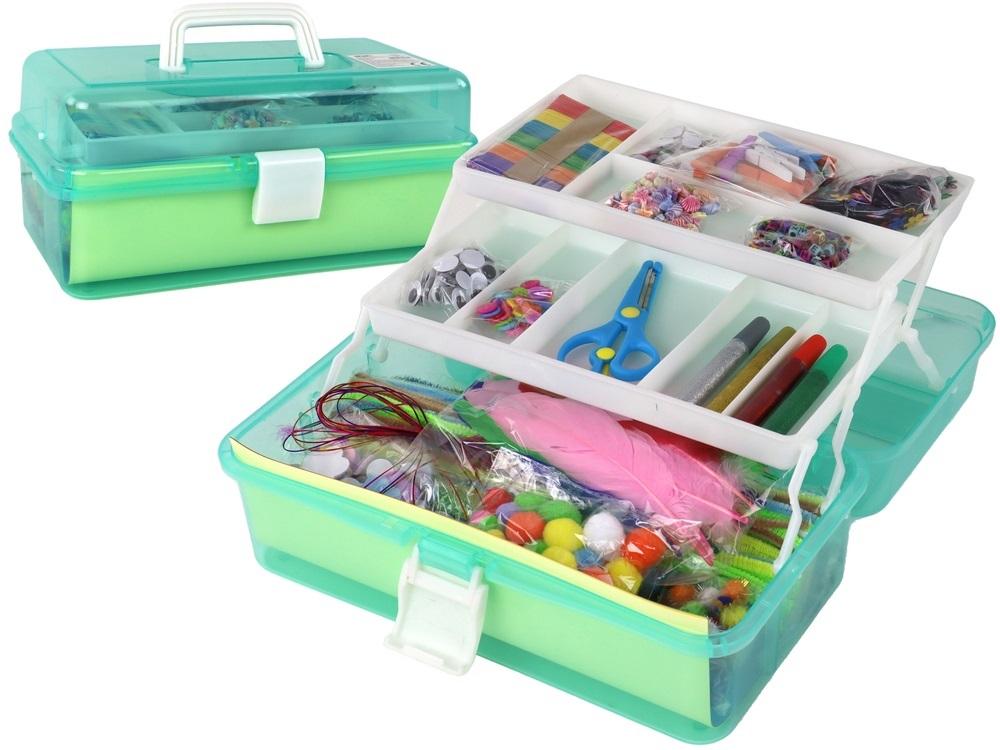 Zielona Rozkładana Walizka Zestaw Artystyczny Kreatywny Plastyczny DIY Pragniemy zaprezentować Ci nasz wyjątkowy zestaw kreatywny DIY, który przyjdzie z pomocą Twojemu dziecku w rozwijaniu kreatywności i umiejętności plastycznych. Nasz zestaw kreatywny DIY jest spakowany w piękną, rozkładaną zieloną walizkę, która nie tylko zachwyca wzrok, ale także jest praktyczna, umożliwiając przechowywanie i organizację materiałów artystycznych. Wnętrze walizki kryje w sobie skarbnicę inspiracji i narzędzi do tworzenia. Znajdziesz w niej różnorodne materiały, które pozwalają na tworzenie różnorodnych dzieł sztuki. Nasz zestaw zachęca dzieci do eksperymentowania i wyrażania siebie poprzez sztukę, dając im możliwość swobodnego tworzenia i wyrażania swoich pomysłów. To doskonały sposób na wprowadzenie ich do świata sztuki i zachęcenie do artystycznych eksperymentów. Tworzenie własnych dzieł sztuki to nie tylko zabawa, ale także nauka. Dzieci rozwijają swoje umiejętności plastyczne, zdolności manualne oraz wyobraźnię, co ma pozytywny wpływ na ich rozwój intelektualny i artystyczny. Zestaw zawiera: -druciki kreatywne -piankowe kwiatuszki -kolorowe piórka -małe spinacze -pompony poliestrowe -kolorowe drewniane patyczki -ruchome oczka kolorowe -ruchome oczka czarno-białe -cekiny, różne kolory i kształty -naklejki -kolorowe żyłki -brokaty w tubce -koraliki -guziczki -nożyczki -kolorowe kartki Wymiary opakowania: 31cm x 18cm x 14cm Posiada certyfikat CE, ponadto jest zgodny z normą EN71. Przeznaczony dla dzieci powyżej 4 roku życia.