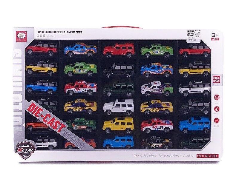 Opis: w zestawie 30 aut 7 cm., napęd - pull back, materiał - metal, 3+