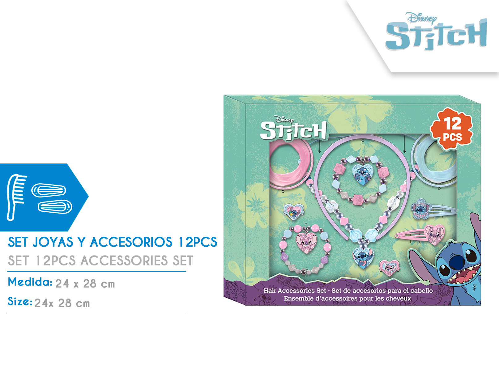 Opakowanie Zestaw biżuterii i akcesoriów do włosów Stitch 12 elementów ST00102