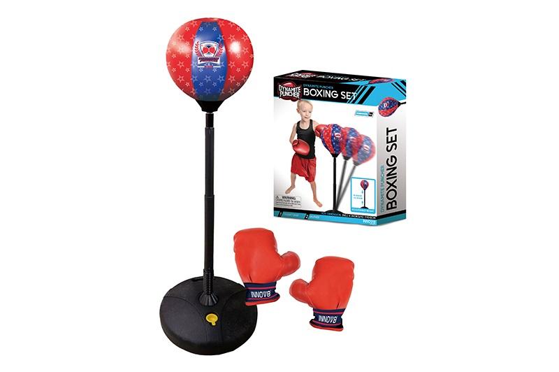 W zestawie: worek treningowy na regulowanej sprężynie od 92 do 111 cm., 2 rękawice, podstawka obciążająca, pompka, wym. opk: 50 x 39 x 11 cm. Wiek 3+
