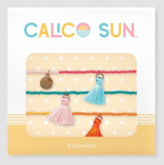 Wyraź siebie kolorem! Zestaw trzech bransoletek Ashley od Calico Sun to idealny dodatek dla dziewczynki, która lubi wyróżniać się stylem i pozytywną energią. Kolorowe koraliki i wesołe frędzelki w odcieniach tęczy tworzą biżuterię w klimacie boho: dziewczęcą, swobodną i pełną uroku. Jedna z bransoletek ozdobiona jest złotą przywieszką z logo Calico Sun, która dodaje całości eleganckiego akcentu. Bransoletki nawleczone są na mocną, elastyczną gumkę, dzięki czemu łatwo je zakładać i zdejmować. To idealna ozdoba na co dzień, do szkoły, na spotkania z przyjaciółkami czy wakacyjne przygody. Doskonale komponują się z wisiorkiem Ashley - Frędzle. Polecane dla dzieci od 6 roku życia.