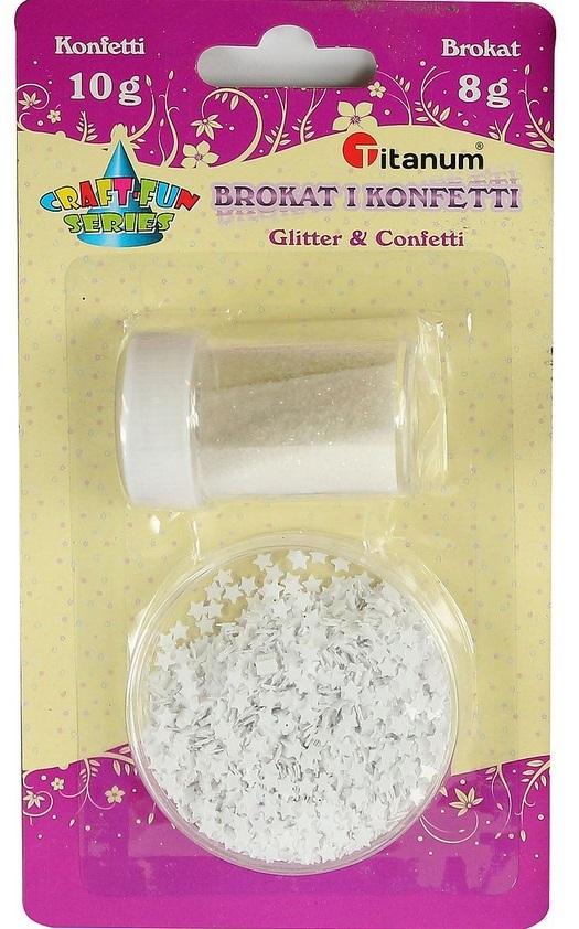Zestaw zawiera: brokat i konfetti w kształcie gwiazdek. Kolor: biały. Waga: brokat - 8 g, konfetti - 10 g.