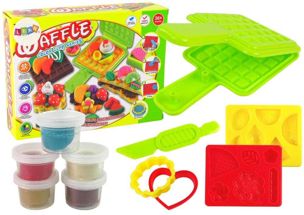 Zestaw Ciastolina Wafle Sandwich Zestaw Foremek Zestaw dla młodego kucharza w jednym opakowaniu. Teraz Twoje dziecko może przyrządzić gofry według własnego przepisu i upodobań. Plastikowe formy pomogą urzeczywistnić wszystkie fantazje malucha. Zestaw skutecznie rozwinie umiejętności motoryczne oraz wzmocni mięśnie dłoni najmłodszych fanów kuchni. Dzięki różnym możliwością przyrządzenia dania dziecko rozwinie również umiejętność twórczego myślenia. Zestaw składa się z pięciu ciastolin w różnych kolorach: -biały, -żółty, -niebieski, -czerwony -brązowy, Autem jest możliwość mieszania ciastolina ze sobą co pozwala uzyskać zupełnie nowe kolory, dziecko w ten sposób rozwija swoje umiejętności plastyczne, manualne i pobudza wyobraźnię. W skład zestawu również wchodzą foremki do odciskania wafelków, tworzenia niepowtarzalnych i smacznych deserów. Wszystkie elementy są łatwe w użyciu, można je czyścić pod bieżącą wodą w razie zabrudzeń. Wymiary foremki: 13 cm x 8 cm x 1 cm Wymiary opakowania: 24 cm x 19 cm x 6 cm Przeznaczona dla dzieci powyżej 3 roku życia. Zgodne z normą EN71 i certyfikatem CE.