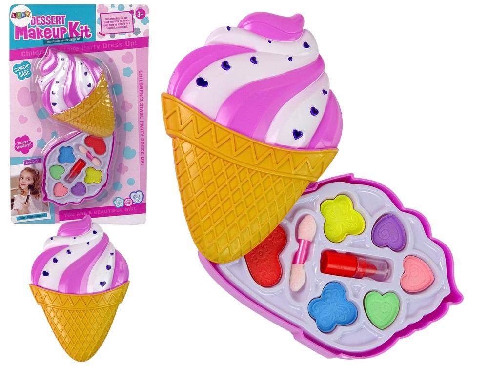 Zestaw Cieni do Powiek Kształt Loda Szminka W pewnym momencie mała dziewczynka zaczyna interesować się wyglądem, makijażem i modą to najwyższa pora na takie zestawy. Nauczy się podstaw makijażu, ale i rozwinie funkcje ręki. Każda dziewczynka uwielbia pięknie wyglądać. Dziewczynka może wybrać spośród cieni do powiek, jak dziś pomaluje się na wielkie wyjście. Kosmetyczka bez problemu zmieści się w torebce. Dlatego będzie idealna na małe wyjścia z koleżankami, ale i jako niezbędnik podczas spotkań. Wszystko znajduje się w przepięknym pudełeczku w kształcie kolorowego loda przyozdobionym serduszkami. Jest to też świetna alternatywa dla podbierania kosmetyków, ponieważ te wchodzące w skład zestawu są bardzo bezpieczne i nietoksyczne, stworzone z myślą o dzieciach. Aby zmyć makijaż, wystarczy zetrzeć chusteczką lub wacikiem z mydłem i ciepłą wodą. Elementy zestawu piękności: - 6 cieni do powiek - pędzelek do malowania - szminka czerwona Wymiary paletki złożonej: 15 cm x 10 cm x 3 cm Wymiary opakowania: 31 cm x 19 cm x 4 cm Zestaw piękności wyprodukowany jest zgodnie z normą EN 71, oznaczono go również certyfikatem CE. Zestaw przeznaczony jest dla wszystkich małych księżniczek powyżej 3. roku życia.