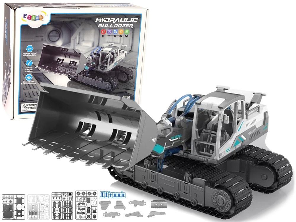 Zestaw DIY Koparka Buldożer Hydraulic Bulldozer 127 elementów Zbuduj swój własny pojazd z hydraulicznym podnośnikiem ! Zestaw Buldożer Gąsiennicowy Konstrukcja DIY Jeżeli chcesz poczuć się jak na prawdziwej budowie to mamy idealny zestaw dla Ciebie. Cały zestaw gwarantuje długą zabawę! Z wielu elementów możesz złożyć buldożer gąsiennicowy z hydraulicznym podnośnikiem. Zasilanie hydrauliczne ma charakter naukowy dla dziecka. Wprowadza dzieci w zastosowanie zasady Pascala i prawa zachowania energii oraz pielęgnuje u dzieci zdolności manualne i kreatywne myślenie. Opakowanie zawiera cały zestaw elementów niezbędnych do budowy buldożera. Cały zestaw składa się127 elementów. Te maszyny nie tylko zadowolą młodszego odkrywce, ale pozwoli na niesamowitą zabawę! Zbuduj to sam! Wymiary zestawu: Długość koparki: 19,5 cm Wymiary opakowania: 31 cm x 24 cm x 11 cm Zabawka przeznaczona jest dla dzieci powyżej 8 roku życia. Zestaw posiada certyfikat CE i jest zgodny z normą EN71.