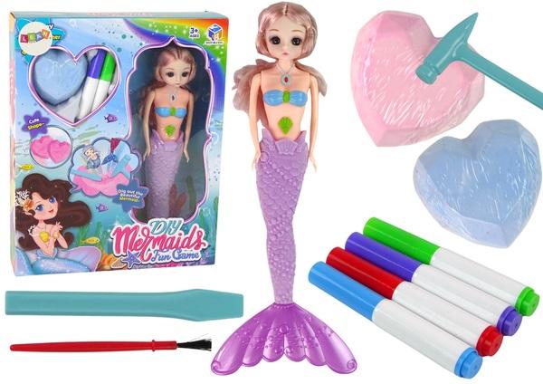 Wieloelementowy zestaw z syreną rozwinie kreatywność i wyobraźnie Twojego dziecka. Baw się swoją małą syreną, udekoruj jej ogon i odkryj, co kryje w małych skałach w kształcie serca. Połączysz zabawę w wykopaliska z rozwijaniem zdolności artystycznych.