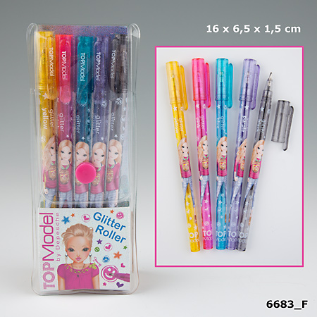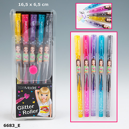 ZESTAW DŁUGOPISÓW ŻELOWYCH TOPMODEL, 5 brokatowych kolorów w zamykanym na klips opakowaniu.