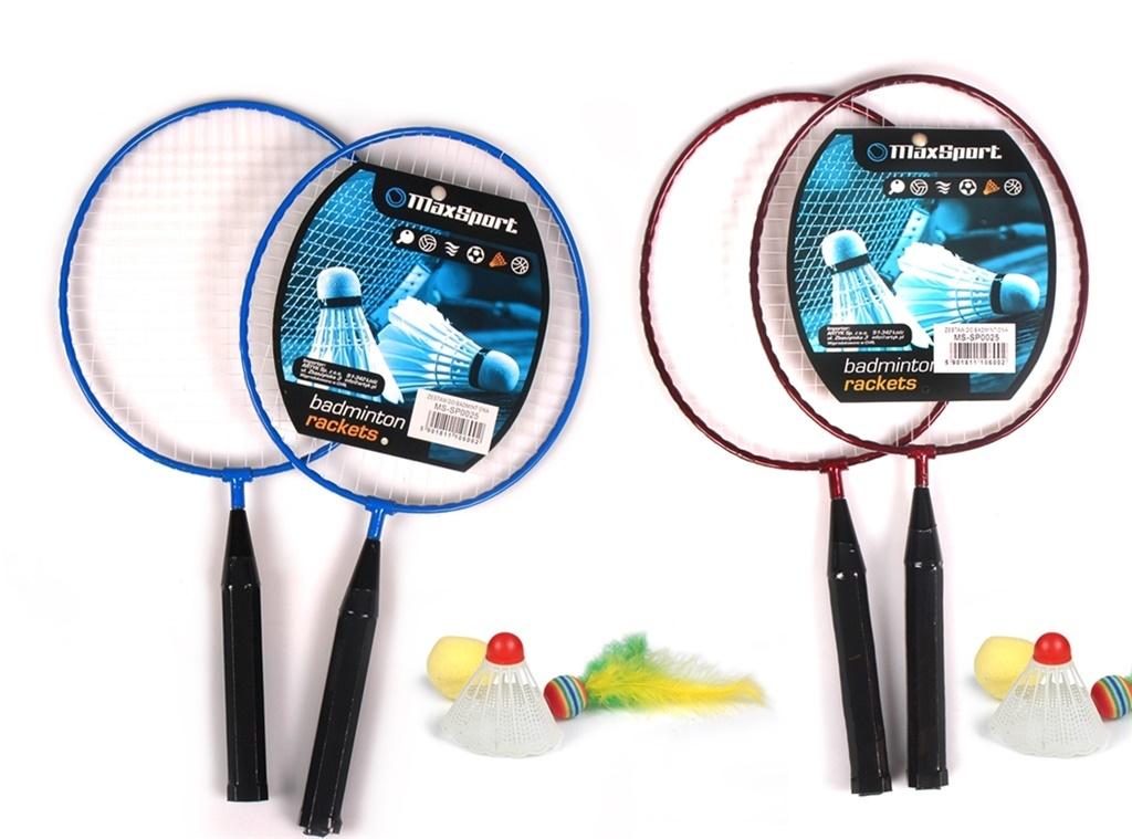 Zestaw zawiera: 2 rakietki, lotkę, 2 piłeczki. Materiał: stal. 2 kolory, towar wysyłany losowo.