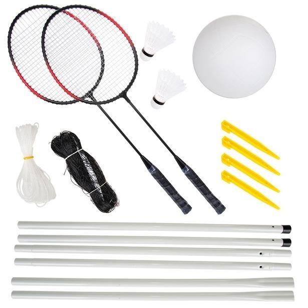 W zestawie znajdziesz wszystko, czego potrzebujesz: 2 rakiety, siatka, słupki, 2 lotki, piłka, wygodny pokrowiec do przenoszenia.