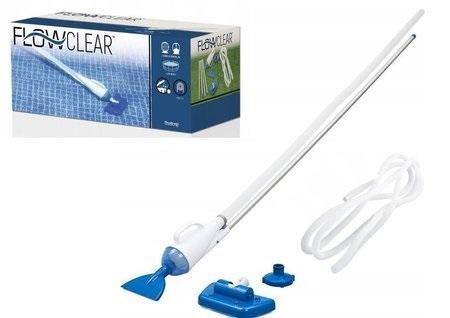 Zestaw Do Czyszczenia Dna Basenu Bestway 58212 Jeżeli posiadasz w swoim ogrodzie basen to z pewnością wiesz co się z tym wiąże. Poprzez użytkowanie go, z czasem zaczynają pojawiać się w nim liczne zabrudzenia i nie przyjemny osad. Każdy posiadacz własnego ogrodowego basenu powinien mieć również w swoich akcesoriach basenowych zestaw do usuwania brudu. Dzięki niemu woda w Twoim basenie już zawsze będzie czysta. Do odkurzacza jest możliwość podłączenia dwóch różnych końcówek dołączonych do zestawu. Urządzenie połączone jest ze sobą za pomocą węża ogrodowego o długości 6m. Niezbędnym elementem potrzebnym do uruchomienia i użytku odkurzacza jest pompa filtrująca. W zestawie znajduję się: - odkurzacz do dna basenu - dwie różne końcówki do odkurzacza - wąż 6 metrów - kij o długości 190 cm - 2 adapter rożnej wielkości do pompy filtrującej Dane techniczne: - długość kija 190 cm - długość węża 6m - średnica węza 32mm Wymiary opakowania: 50,5 cm x 21 cm x 21 cm Waga: 2,2 kg