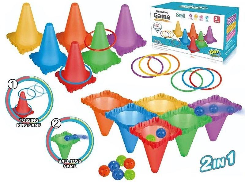 zestaw do gier plenerowych, 18 części, 6 pachołków, 6 piłeczek i 6 ringów; 26,5x14x14cm, Box