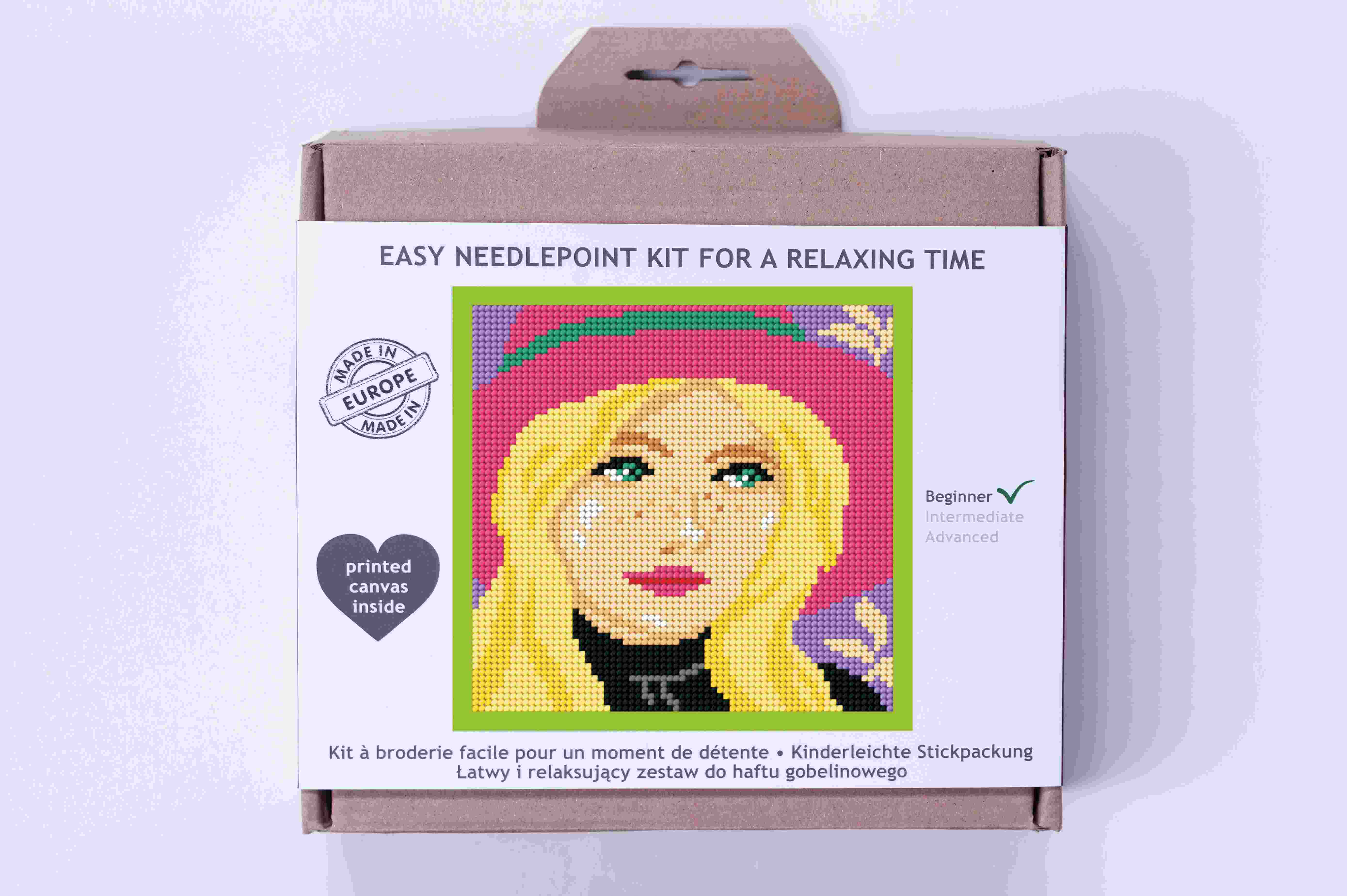 W opakowaniu: tkanina z nadrukiem, igła, włóczka, schemat plus instrukcja, pakowane w kartoniku z obwolutą i eurodziurką.