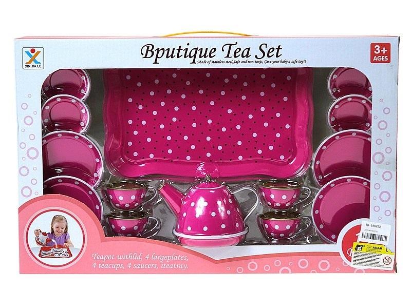 Zestaw do herbaty, metalowy z tacą.