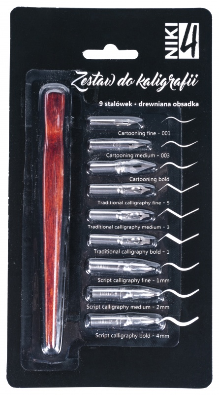 Opakowanie Zestaw do kaligrafii 9 stalówek + drew. obsadka