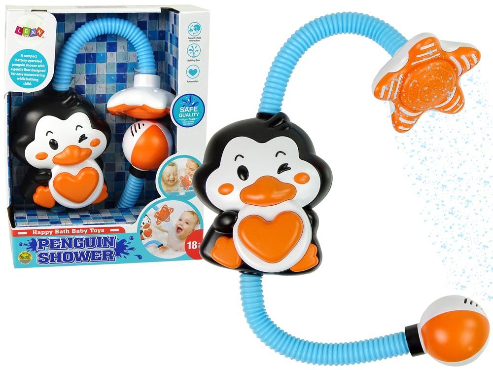 Dziecięcy Zestaw Do Kąpieli Prysznic Pingwin Pompka Zabawka do kąpieli jest najlepszym wyborem przy wczesnym rozwoju dziecka. Kąpiel Twojego dziecka będzie przyjemną czynnością i poprawi funkcje poznawcze Twojego dziecka podczas zabawy. Prezentowana zabawka z pewnością sprawi, że maluszek w przyjemny sposób oswoi się z wodą. Zabawka idealna do wanny dla niemowląt, swoimi funkcjami zachęci malucha do samodzielnej zabawy i poznać mechanizmy nalewania wody z kubeczków. Z tyłu pingwin ma zamontowane przyssawki, dzięki którym możemy przymocować do wanny. Spód zabawki powinien znajdować się w wodzie. Po zamocowaniu zabawki wystarczy nacisnąć serduszko, a woda zacznie spływać z prysznica do fontanny. Za pomoc specjalnych kubków można łatwo zmienić kierunek przepływu wody. A woda z łatwością obraca młyn, tworząc wodospad wody. Wielkości i różne kolory pozwolą na poznanie otaczającego ich świata, struktur i barw. Wymiary zabawki: 62 cm x 13 cm x 7 cm Wysokość pingwina/prysznica: 62 cm Wymiary opakowania : 32 cm x 25 cm x 10 cm Produkt jest przeznaczony dla dzieci powyżej 18 mc życia. Zasilane trzema bateriami 1,5 V AA. Zabawka jest zgodna z normą EN71. Uchwyt na zabawki do kąpieli zapewnia cyrkulację powietrza i umożliwia całkowite odprowadzenie wody, zapobiega pleśni i bateriom, dzięki czemu zabawki dla dzieci pozostaną suche i czyste.