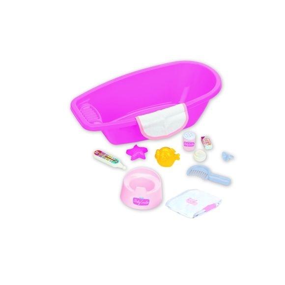 Składa się z wanienki, gąbki, myjki, śliniaczka, nocnika, pieluchy, smoczka, rybki, rozgwiazdy, termometru, grzebienia, buteleczki zasypki i kremu dla niemowląt Waga : 0,7 kg Wymiary opakowania : 51x28x15 cm Ilość w opakowaniu zbiorczym : 6 Kraj pochodzenia : Niemcy Duży zestaw do kąpieli jest częścią serii Baby Coralie firmy Klein, która opracowała wiele pięknych akcesoriów dla lalek: śpiworki, nosidełka dla lalek, krzesełka, w pełni wyposażone torby na pieluchy, wanienki i zestawy pielęgnacyjne i wiele więcej. Kiedy dzieci opiekują się swoimi lalkami, zabierają je ze sobą, gdziekolwiek się udają, pielęgnują je i troszczą się o nie, rozwijają empatię, wyobraźnię i zdolności motoryczne. Wszystkie zabawki tej serii przyczyniają się do pomysłowego odgrywania ról, podczas którego dzieci uczą się wiele o odpowiedzialności, miłości, trosce, komunikacji i empatii.