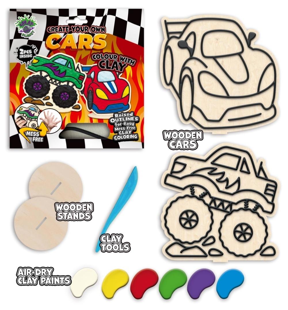 Zestaw do kolorowania plasteliną na drewnie Auta