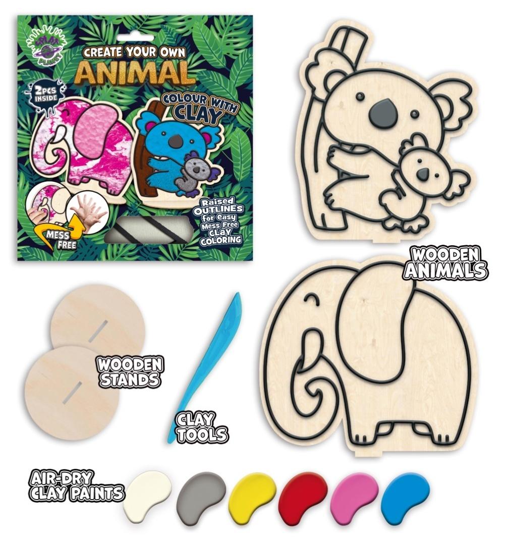 Zestaw do kolorowania plasteliną na drewnie Zwierz