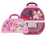 Zestaw do kolorowania Psi Patrol w półokrągłym etui z uchwytem. Zawartość: 12 mini kredek, 6 markerów, 24 kredki, gumka, 2 mini ołówki, temperówka, 4 plakaty, 1 arkusz naklejek