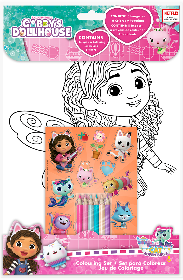 Kompletny zestaw papierniczy z Gabby's Dollhouse. Idealny do kolorowania postaci i najlepszych scen z filmu.