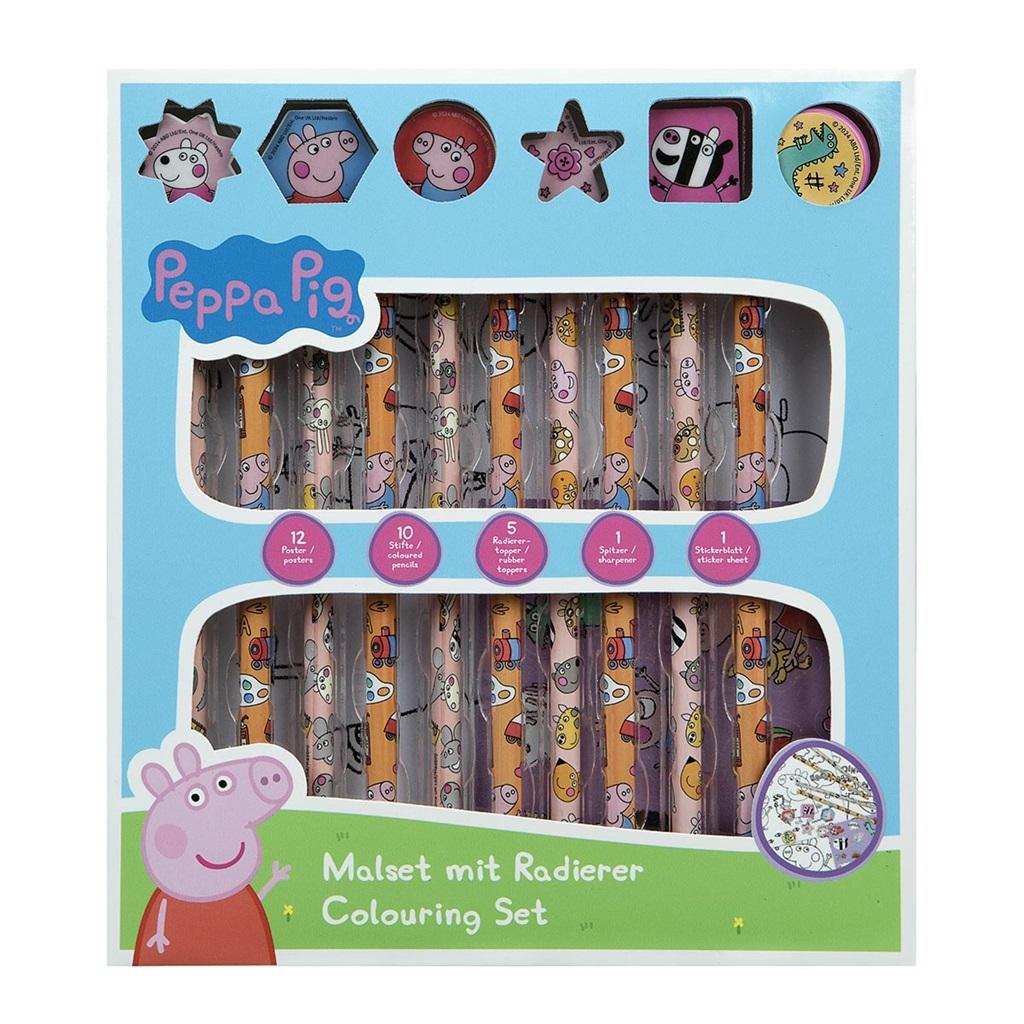 Zestaw do Kolorowania z Naklejkami, 29el. Świnka Peppa Zestaw kolorowanek to wymarzony prezent dla każdego malucha. Znajdują się w nim zarówno kredki, kolorowanki z wizerunkami bohaterów ulubionej bajki Świnka Peppa, jak również naklejki ozdobne oraz temperówka i gumki. Tylko wyobraźnia wyznacza tu granice. Nieważne czy jesteś przedszkolakiem, pierwszoklasistą czy piątoklasistą - potrzebujesz przyborów do swojej przygody gdziekolwiek jesteś. Zgrabny zestaw kolorowanek z wizerunkami z bajki Świnka Peppa- 29 el.. Idealny do zabawy w domu szkole lub w podróży, zmieści się w każdej torbie, a nawet kieszeni. Wewnątrz: 10 kolorowych kredek, 12 arkuszy do kolorowania, 1 arkusz z ozdobnymi naklejkami, 5 nakładek gumek oraz 1 temperówka. Wykonany ze szczególną dbałością. Wspaniały prezent, funkcjonalny dodatek. Wymiary kolorowanek: 17 cm x 9,5 cm x 0,1 cm Wymiary opakowania: 22 cm x 19,5 cm x 2,5 cm. Kategoria wiekowa: dla dzieci powyżej 3 roku życia. Uwaga: produkt przeznaczony dla dzieci powyżej 3 lat. Ryzyko zakrztuszenia.