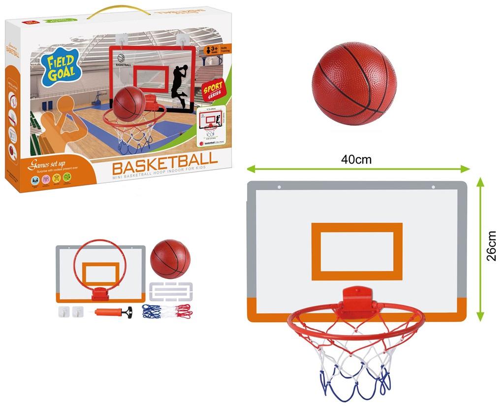 Zestaw do koszykówki. W zestawie pompka i gumowa piłka.
