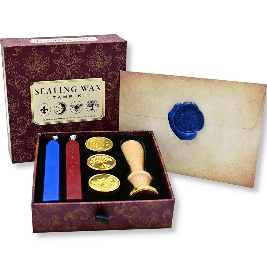 Zestaw do lakowania Peter Pauper Press jest niezastąpiony do ozdabiania listów, zaproszeń, albumów, okładek i wszelkich prac kreatywnych. W skład zestawu wchodzą: 1 drewniany uchwyt oraz 4 stemple pieczęcie (fleur-de-lis lilijka, półksiężyc z gwiazdami, drzewo życia, trzmiel), 2 laski wosku.
