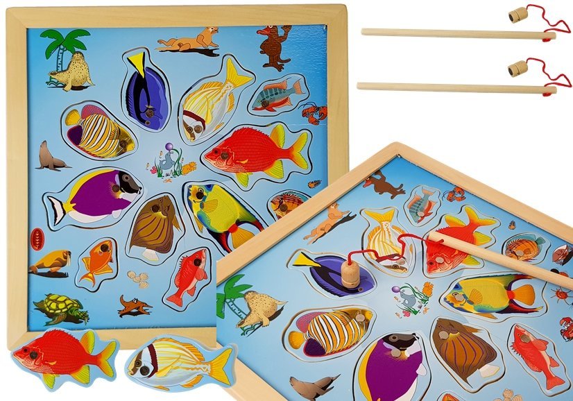 Zestaw do Łowienia Rybek na Magnes Drewniane 27x27 cm