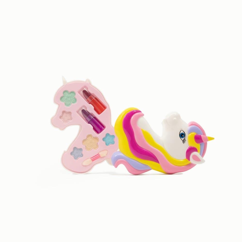 W zestawie znajdują się cienie do powiek z brokatem, błyszczyki, 2 pomadki, 3 aplikatory. Zestaw 2 poziomowy. Produkt nie wymaga użycia baterii.